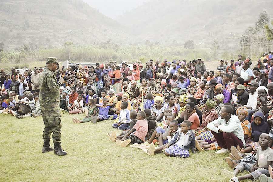 Ubwo Guverineri w’intara y’Amajyaruguru MUGABOWAGAHUNDE Maurice ari kumwe n’umuyobozi w’ingabo mu majyaruguru Col Steven KAYIGUMIRE ndetse n’umuyobozi w’inkeragutabara Lt.Col Charles KAMALI bageraga muri aka kagali abaturage babakiranye urugwiro n’ibyishimo byinshi mbere yuko babagezaho ubutumwa bari babazaniye.