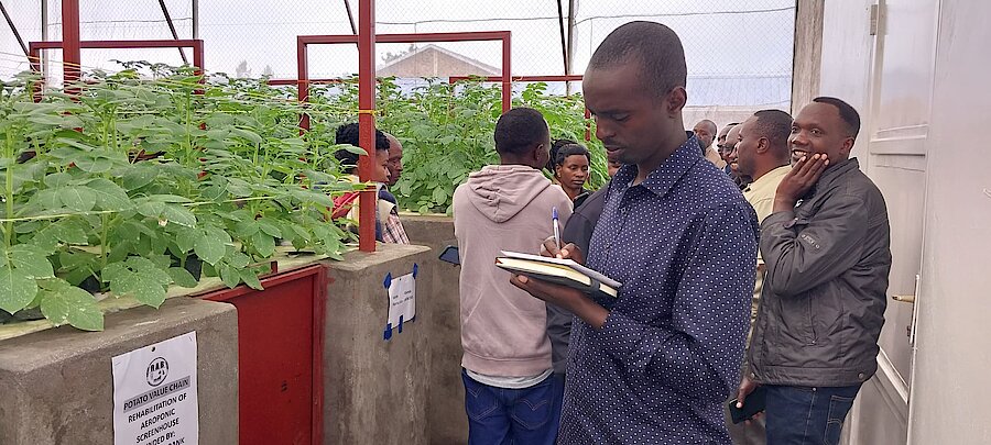 Kwikubitiro hasuwe Ikigo cya RAB / Station ya Musanze ahasuwe uburyo bukoreshwa mu butubuzi bw’imbuto nziza y’ibirayi,hanasurwa Rwiyemezamirimo NZABIRINDA Isaac ukora ubutubuzi bw’imbuto y’ibirayi hifashishijwe uburyo bwo guhinga mu nzu (greenhouses).