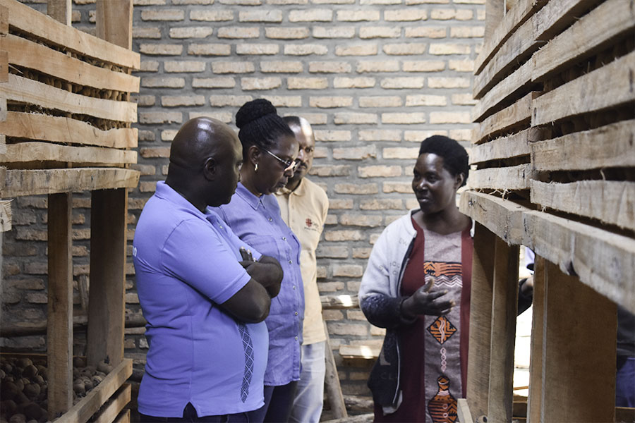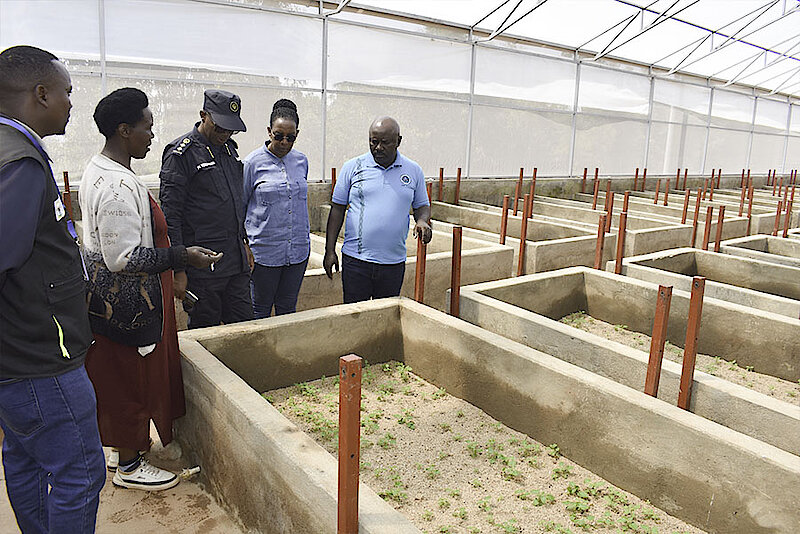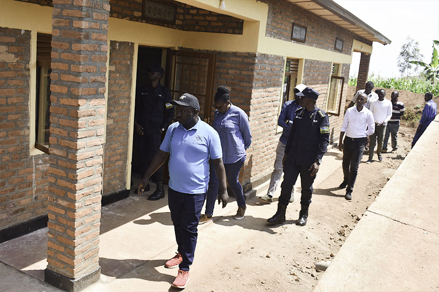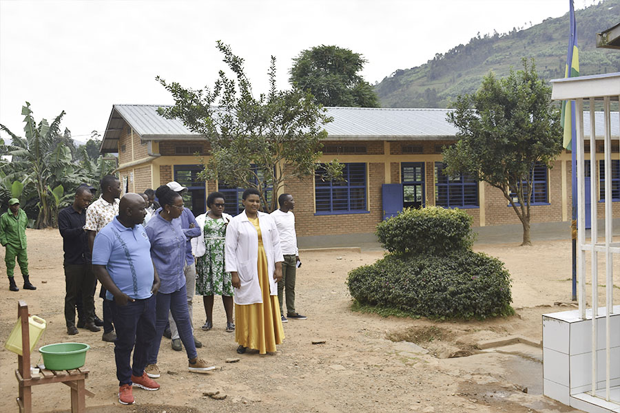 Abayobozi basuye imishinga itandukanye irimo Ibyumba bitatu by’amashuri byubatswe kuri EP Buhande n' ubutuburiro bwa Cooperative KOYAKIRU itubura imbuto y'ibirayi mu kagari ka Gasiza mu murenge wa Bushoki.