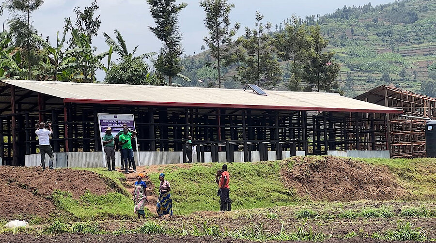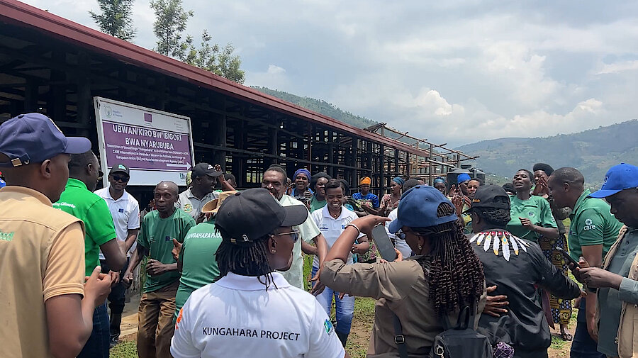 Gutangiza igihembwe cy'ihinga cya 2026 A byabereye mu gishanga cya Nyarububa abahinzi bibumbiye muri Koperative KOYAKIRU bashyikirijwe ubwanikiro bw'ibigori bwubatswe ku nkunga ya DUHAMIC ADRI muri gahunda y'umushinga KUNGAHARA.