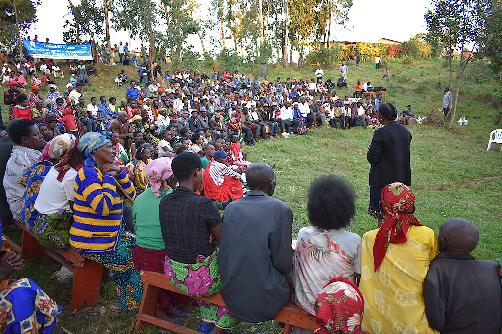Ku gicamunsi cyo kuri uyu wa kabiri, tariki ya 03 Ukwakira 2023, Umuyobozi w'Akarere ka Rulindo Madamu MUKANYIRIGIRA Judith ari kumwe n'umuyobozi w'Akarere wungirije ushinzwe imibereho myiza Bwana MUTAGANDA Theophile n'abandi bagize inama y'umutekano itaguye y'Akarere bifatanyije n'abaturage b'Umurenge wa Rusiga mu Nteko y'abaturage, gutangiza ukwezi k'Ubumwe n'ubudaheranwa no kwizihiza Umunsi Mpuzamahanga w'abageze mu zabukuru.