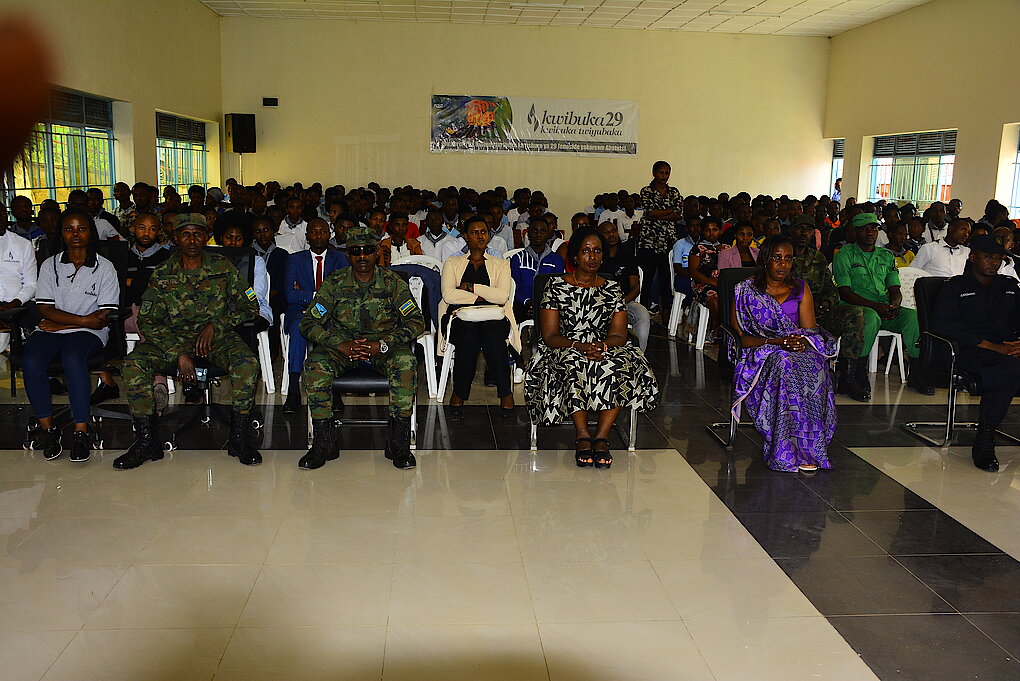 Umuyobozi nshingwabikorwa ushinzwe Ubumwe, itorero n'uburere mboneragihugu muri MINUBUMWE Madamu Anita KAYIRANGWA ati: "Jenoside yasize ibikomere byinshi: imfubyi, abapfakazi, abana bavuka ku babyeyi bagize uruhare muri Jenoside yakorewe Abatutsi, incike ... Igihango urubyiruko mufite rero ni ukubaka igihugu, ni ukubaka ubumwe, amateka tuyibuke ariko tuyigireho; tuzirikane ko urugamba rwo kubohora u Rwanda rwatangijwe kuko ubumwe bw’Abanyarwanda bwari bwarasenyutse. Jenoside ntizasubire ukundi. Urugamba rwo kurwanya ihakana n'ipfobya rya Jenoside ruracyariho, tugomba kururwana; urubyiruko ni mwe bo gufata iyambere mu kubanyomoza mukoresheje imbuga nkoranyambaga. U Rwanda rwahisemo kuba Umwe; Jenoside ntizasubira ukundi."